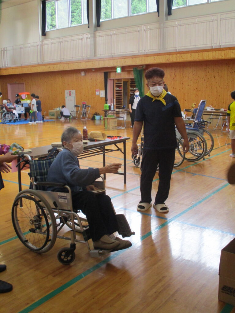 千寿荘では初めての地域交流イベントを近隣の小学校の体育館で開催しました。千寿荘やグループホームのご利用者様をはじめ、小学校の児童の皆さん、そして千寿荘の職員の子どもさんたちも多数参加し、会場は終始賑わいを見せていました。