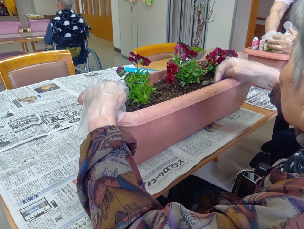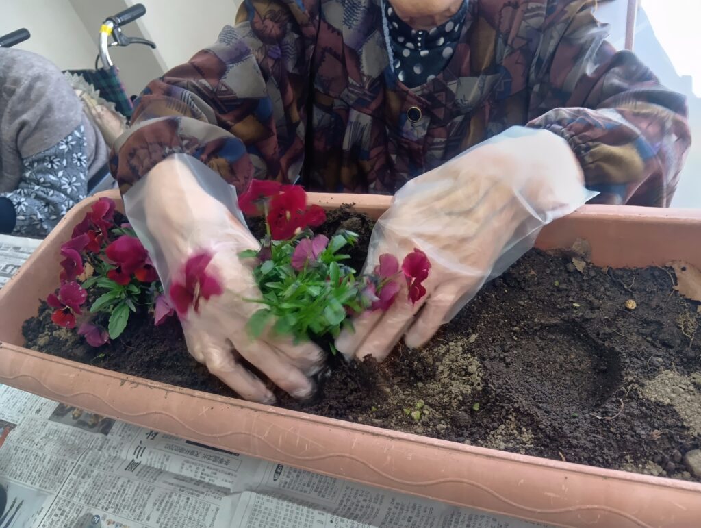 ご利用者も楽しそうに花植えをしておられました。